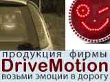 «Drivemotion» - автомобильный коммуникатор с анимированными смайликами. Он транслирует на дсиплей заранее запрограммированные сообщения.