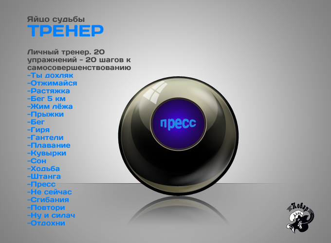 Идеальная фигура? Элементарно! Магический шар «Тренер» подскажет и укажет как. Теперь, персонально для тебя, незаменимый наставник всегда с тобой.