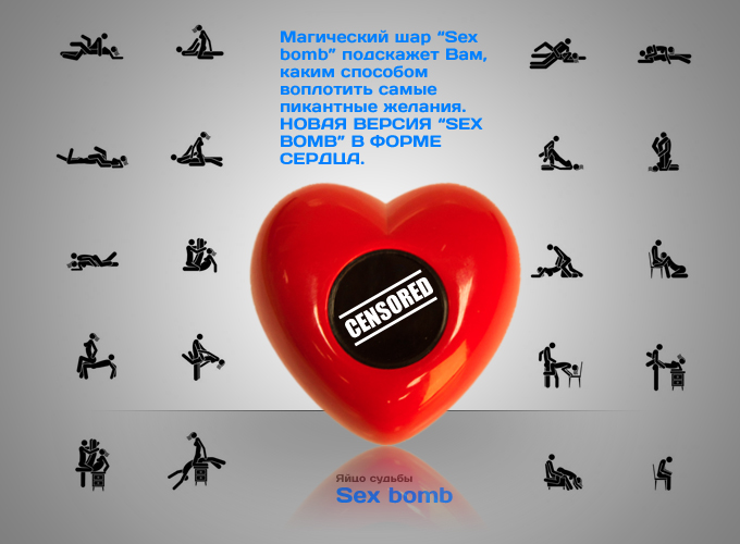В Вас кипят жаркие страсти? И они не находят выход? Магический шар «Sex Bomb» подскажет Вам, каким способом воплотить самые пикантные желания.